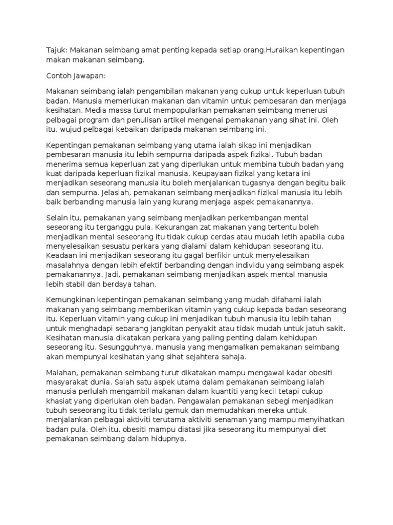 Contoh karangan kebaikan amalan pemakanan seimbang kepada remaja. Jelaslah bahawa pemakanan yang seimbang dapat memastikan tubuh badan menerima semua khasiat yang diperlukan untuk menangkis kehidupan zaman moden. Cth karangan gaya hidup sihat 1. Antara kepentingan pengambilan makanan yang seimbang ialah Aktiviti pemakanan prasekolah bersama ibu bapa these pictures of this page are about:kepentingan makanan kepentingan pengambilan makanan seimbang.
