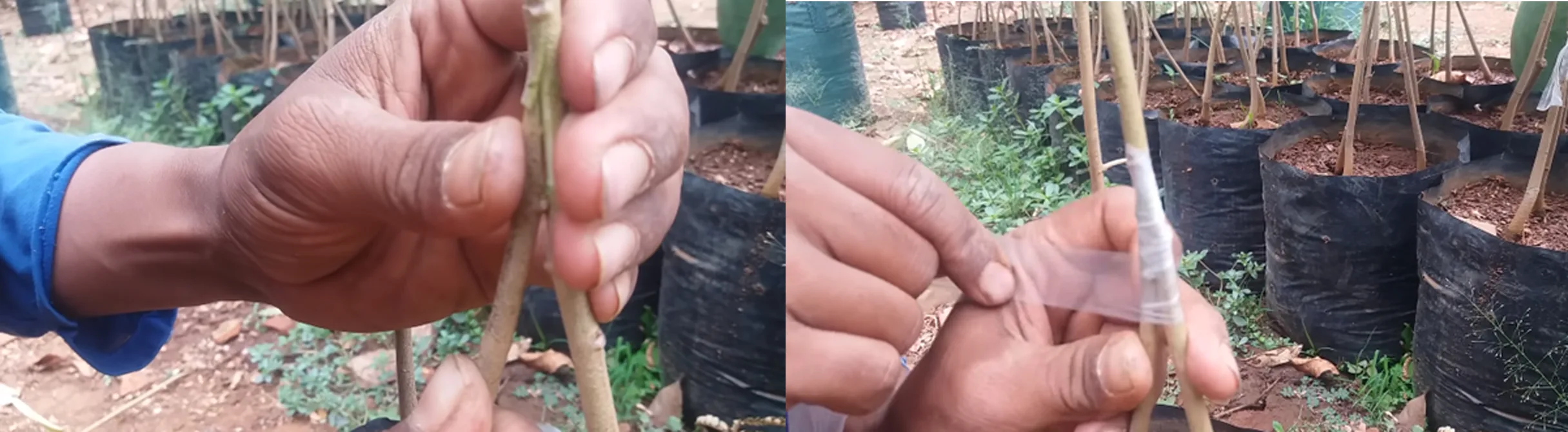 Cantuman Mata Tunas Durian - Jika melalui kaedah cantuman, durian berbuah lebih cepat iaitu lebih kurang 4 hingga 5 tahun sahaja.
